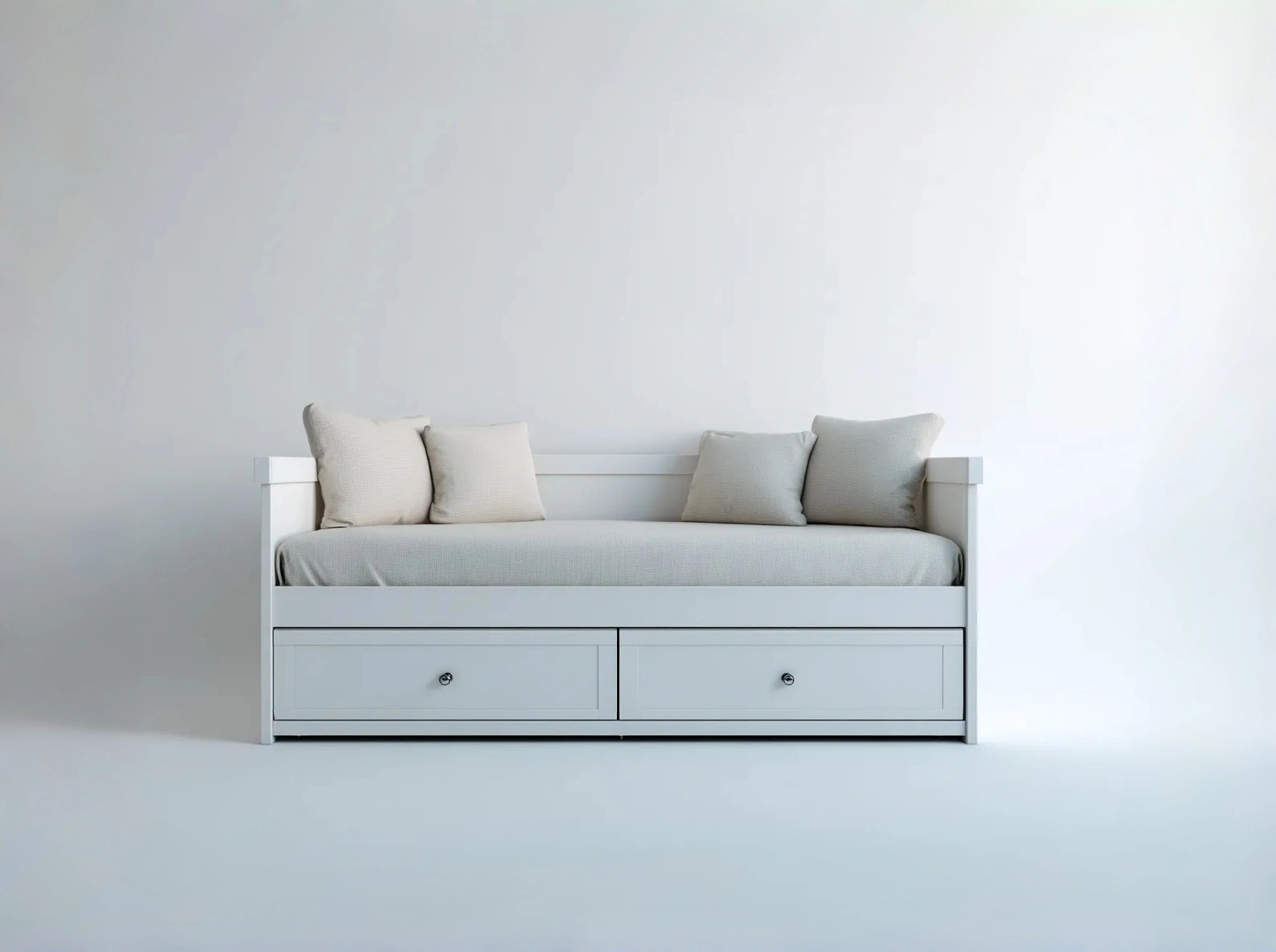 The tall wooden headboard offers stable back support, while the reinforced structure ensures secure mattress placement for everyday use.